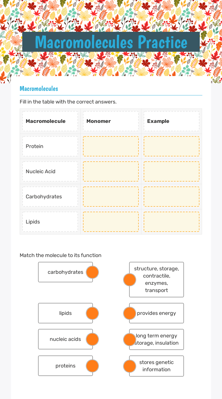 What kind of solution contains more hydrogen ions than hydroxide ions? Just print, fold and laminate them! Classify each as a carbohydrate, protein, lipid or nucleic acid. Rate free macromolecules review worksheet for h biology answer key form. Macromolecules review worksheet for h biology.